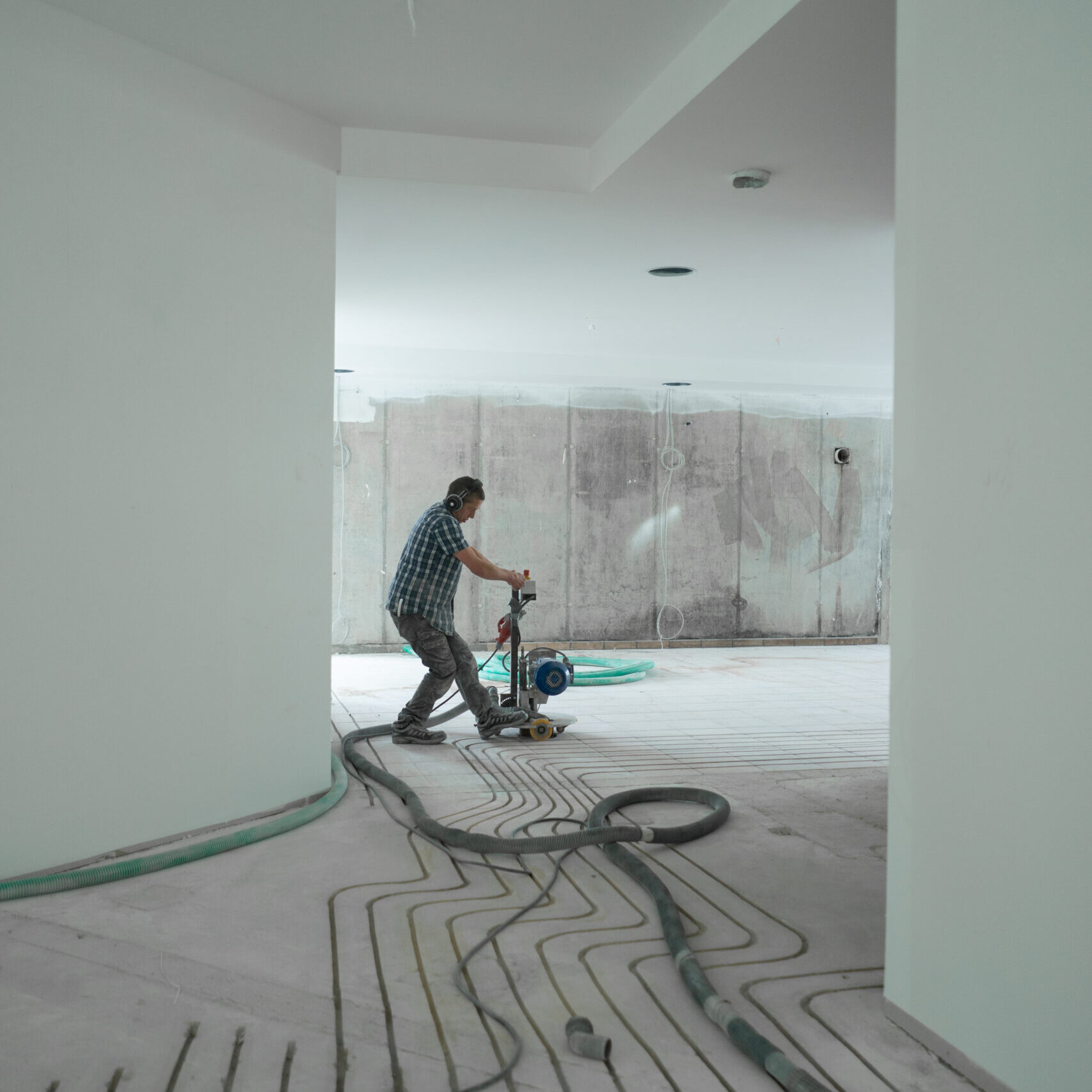 Im Sportpark Wiehl haben wir rund 400 m² Fußbodenheizung eingefräst und im Anschluss fachgerecht verspachtelt.
