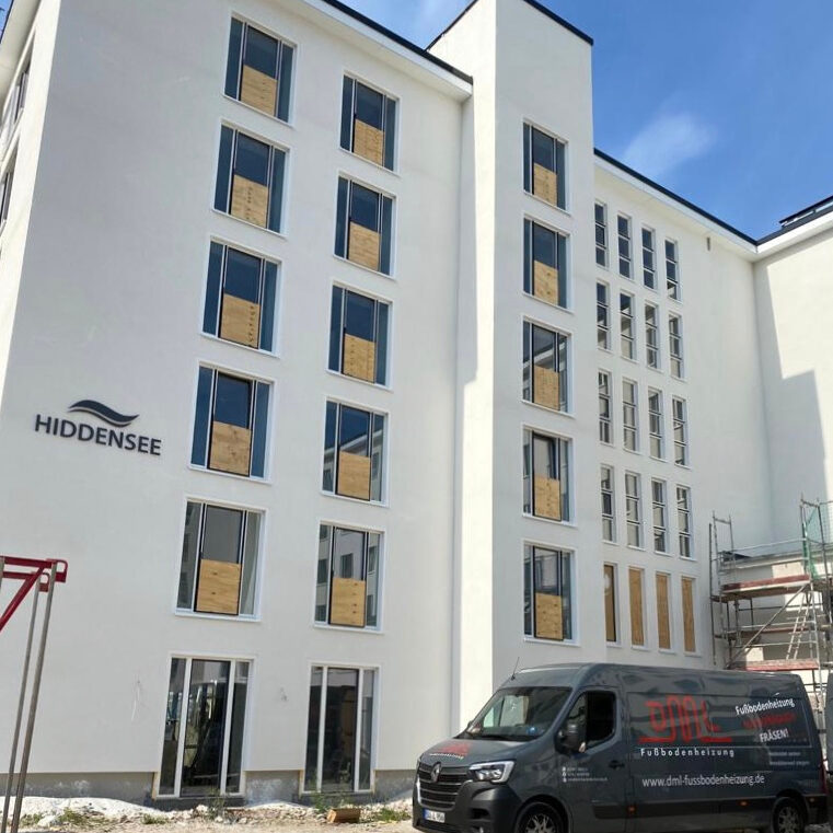 In den letzten Jahren wurde Prora (Rügen) aufwendig saniert und in eine luxuriöse Anlage umgewandelt. Da es unter Denkmalschutz steht und die Bodenhöhen unverändert bleiben mussten, hat DML auf tausenden Quadratmetern den neuen 3 cm dicken Estrich präzise eingefräst